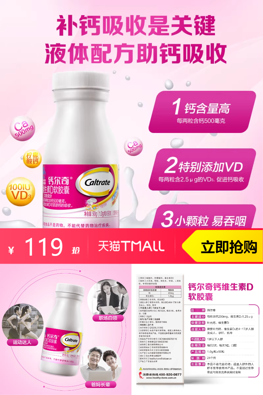 鈣爾奇vd液體鈣90粒檸檬酸鈣碳酸鈣易吸收液體鈣小顆粒易吞服2瓶。